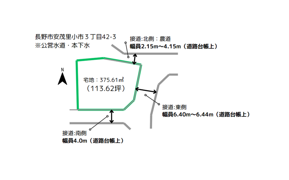 東側:幅員6.4m~6.44m (5号道路)、接道約18m